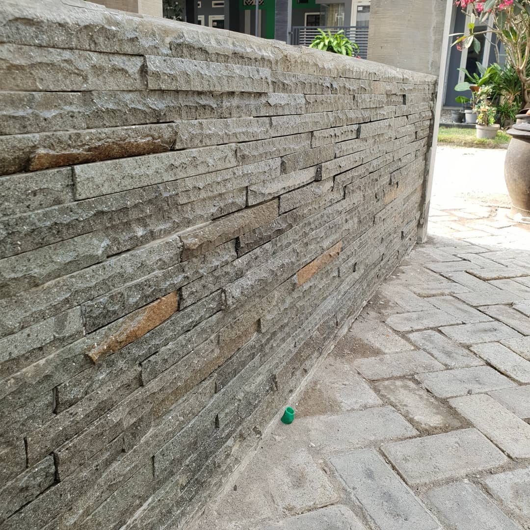 Batu ini mirip seperti batang kayu belah, terlihat polos bila di lihat dari Kejauhan. Namun bisa terlihat indah jika di lihat dari jarak dekat. Dengan warna abu-abu batu ini cocok di gunakan untuk dinding bagian luar yang memfokusan pada bagian luarnya saja.Baca juga : Jasa pembuatan gazebo
