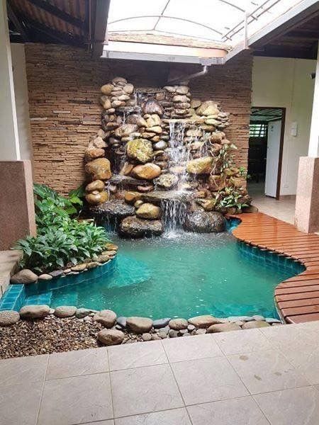 2. Kolam Ikan Koi dengan Air Terjun Mini